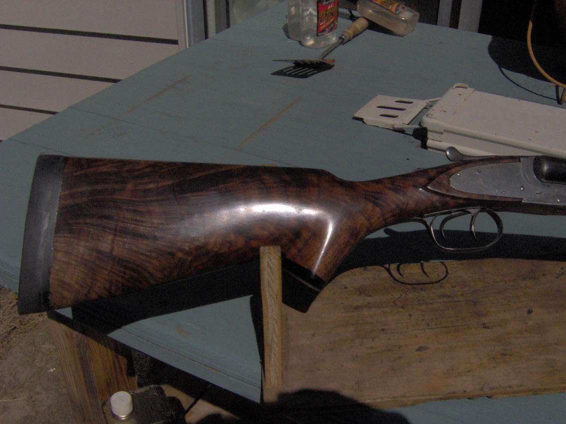 In 1974 a Master Gunsmith took me in as an apprentice. I was a police officer at the time and he sorta helped me along with the guns. He had me buy a foot locker full of old double barrel shotgun parts at a gun show. None of the guns had any wood. I soon learned why most stock makers scream into their pillows at night when asked to stock an L.C. or Parker side lock. I "Rescued" 23 L.C. Smith, 1 Parker B grade, several other various makes and models. I still have them. They are all very good shooters. Each of them has it's own mutton leg leather case that I also "Rescued" from various sources so the "Old Ladies" (Elsie's) would be properly attired when in the field. The Parker is a snob so he has a hard leather case.